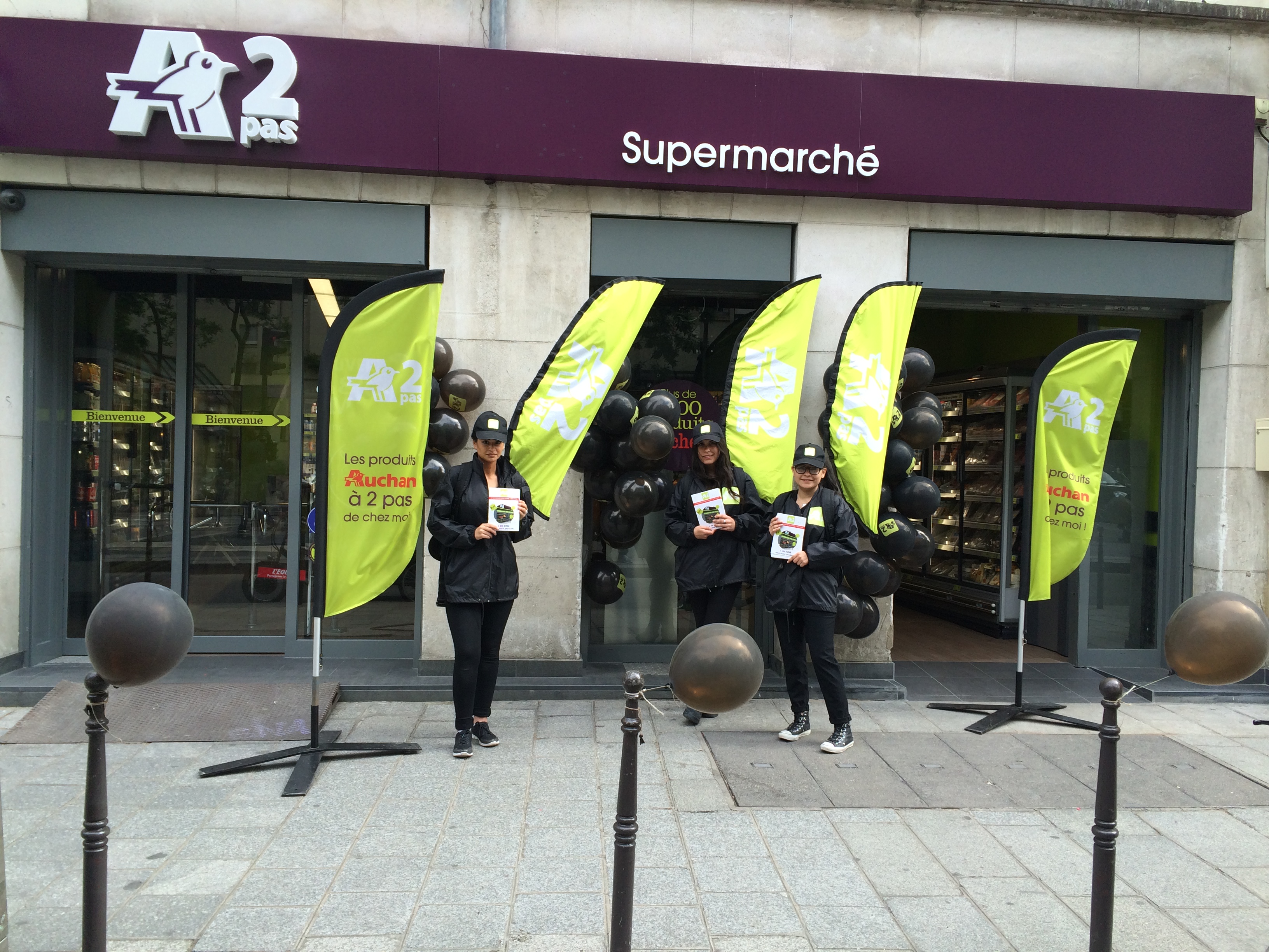 Le groupe Auchan est considéré comme le 3eme groupe de distribution français dans le monde et le 11e groupe de distribution alimentaire dans le monde. Bien que sa notoriété soit déjà bien inscrite, rien de mieux pour le groupe Auchan que de relancer son activité avec des campagnes de communication non-traditionnelles et originales. Pour cela, Auchan devient partenaire de notre agence en mettant en place une opération de Street Marketing complète : distribution exclusive de flyers dans des lieux stratégiques comme les sorties du métro Rambuteau (plus de 10000 tracts), distribution en boites aux lettres, des vélos publicitaires aux abords du point de vente, des ballons publicitaires tout autour de la vitrine extérieur du point de vente, des affiches publicitaires, des tenues aux couleurs du groupe… Grâce à tous ces éléments réunis, les campagnes de communication VILLOPUB ont connu un franc succès.